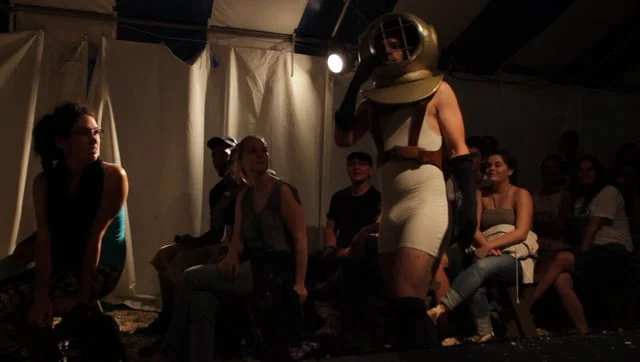 Thesis work performance featuring vaudeville acts related to Harry Houdini, his escape acts, and his patented diving suit. This clip features a diver, who while out exploring the sees, glimpses a great polar bear emerge from icebergs ahead.